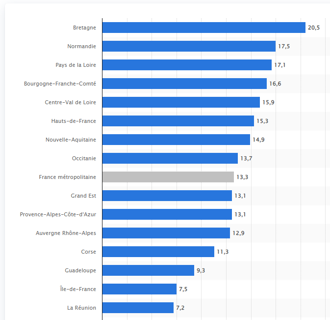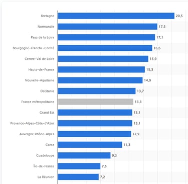 Taux brut de mortalité par suicide en france en 2022 pour 100.000 habitants.